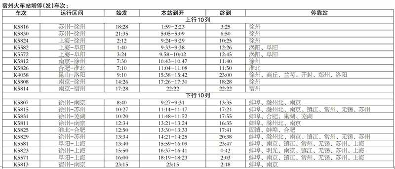 宿州火車站將增停(發)20趟列車