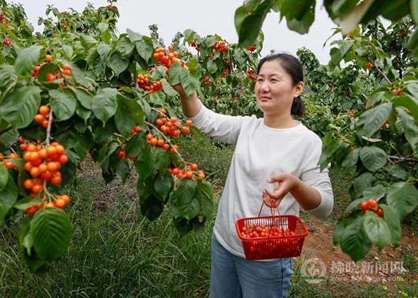日前,埇橋區曹村鎮前旺村50畝櫻桃園成熟開園,果滿枝頭,紅如瑪瑙,喜迎八方游客。近年來,該村利用荒山多的特點,積極向荒山“要效益”,大力栽植山杏、櫻桃等山雜果樹,取得顯著成效,昔日荒山變成“花果山”。圖為游客正在采摘櫻桃。 特約攝影 武正彪 楊林英