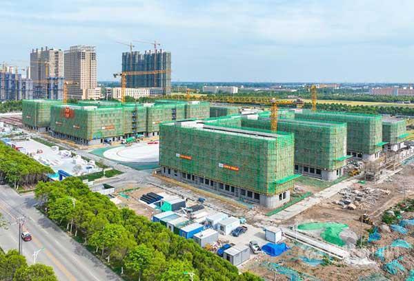5月13日,航拍位于宿城人民南路與鞋城二路西南側的鞋城九年一貫制學校建設現場。目前,該工程主體已順利完工,今年底,該重點項目將實現全部竣工并投入使用。投入使用后,將為周邊適齡學子提供更加優質和便捷的教育服務。記者 馬峰 蘇洋 攝