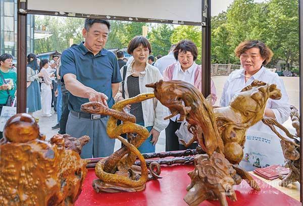 根雕藝術品引來游客駐足觀看。
