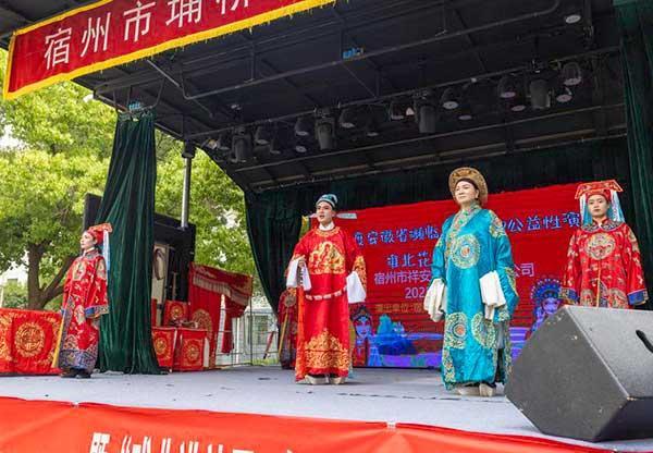 6月3日,埇橋區三里灣街道陳營社區在藍石春天花園小區舉行“戲曲進社區 歡樂送萬家”活動。來自埇橋區花鼓戲劇團的演員們身著傳統戲服,為廣大市民帶來一段段經典劇目,既弘揚中華優秀傳統文化,又讓居民在家門口欣賞到精彩的戲劇表演。記者 蘇洋 攝