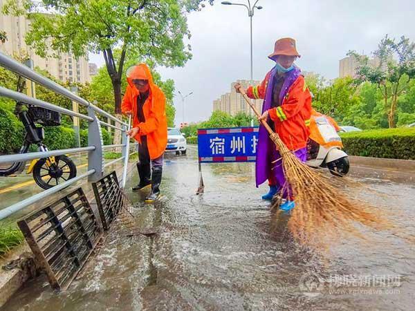 6月19日至20日,宿州迎來一輪強降雨天氣,給車輛和行人帶來道路安全隱患。我市交警、城管、環衛等各部門人員齊上陣,迅速排水泄汛,全力做好雨水管線疏浚、雨水井清掏、積水清掃、交通疏導等工作,保障道路安全暢通,確保市民安全出行。 記者 蘇洋 蔣幫煜 攝