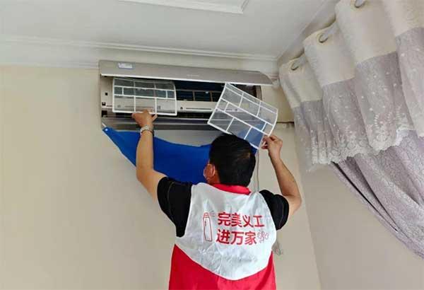 6月22日上午,完美(中國)有限公司安徽分公司(以下簡稱“完美安徽分公司”)組織志愿者,來到宿城恒大御景灣小區,開展第十四屆完美義工進萬家活動(宿州站),為小區58戶居民免費清洗空調。