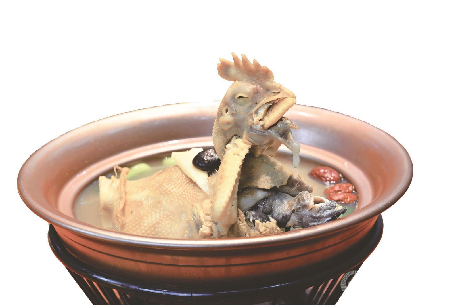 此菜為一道湯菜,制作時先將甲魚宰殺,沸水入鍋中焯水,再將仔雞去內臟洗凈,后將兩種食材放鍋中燉煮,至湯汁清澄時放入調味料即成?!笆晨统缘竭@道菜,自然會聯想到楚漢歷史。更重要的是,這道菜正是皖北地區宴席的必備,可謂婦孺皆知,見證了時代的變遷?!崩钛┟氛f,成語背后的文化,同樣通過舌尖傳承下來。