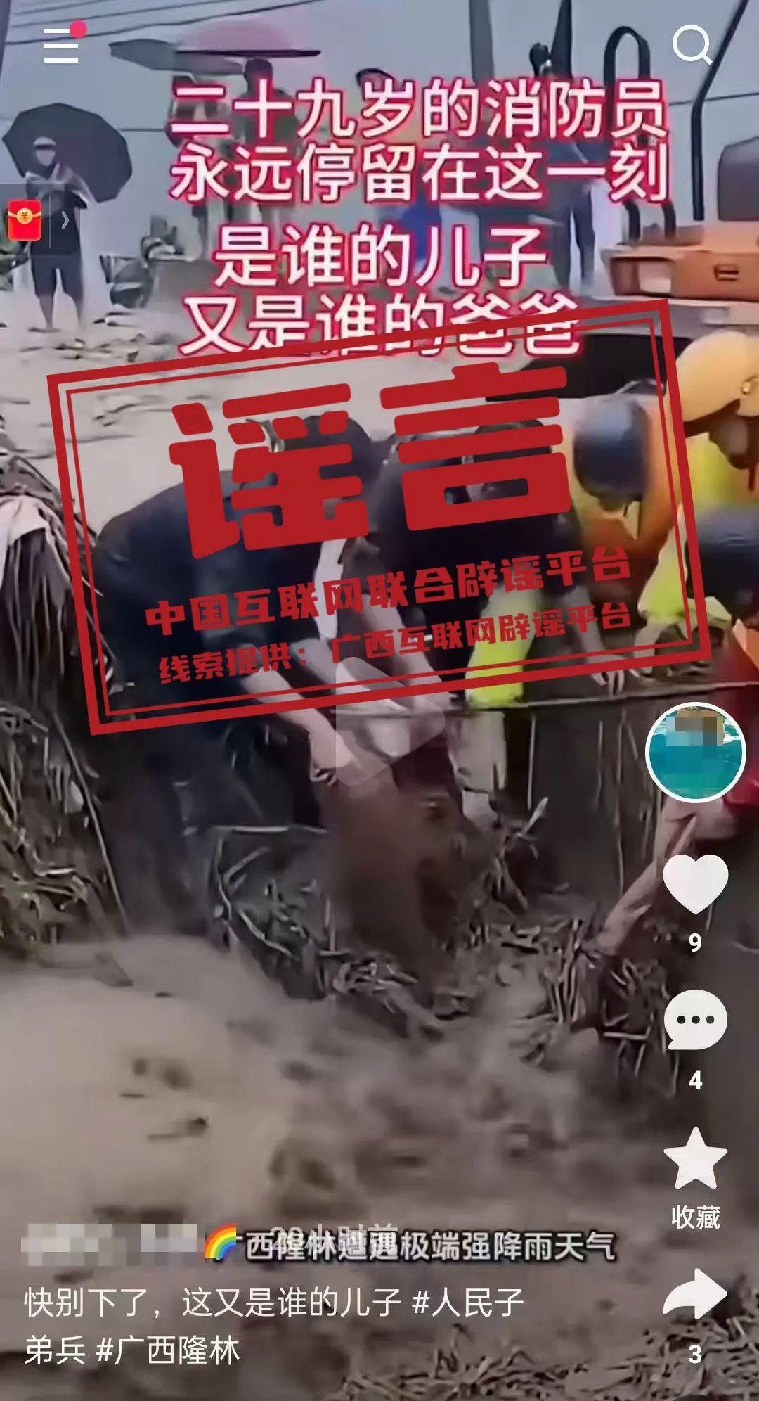 辟 謠網傳“一名消防員在廣西隆林抗洪救援任務中犧牲”為不實信息