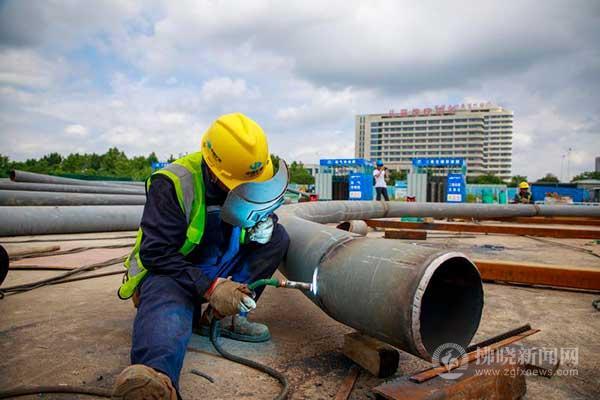 “繡”好一條焊縫通常需要2個小時左右,為了搶在晚上8點前收工,張紅義通常將每條焊縫分成兩部分,在材料冷卻過程中交替作業,讓效率達到最高。“工期緊,一天要焊四五條縫,幾乎沒什么時間休息。”記者看到,他的臉被安全帽帶勒出兩道深溝,手中的動作卻一刻沒有停歇。