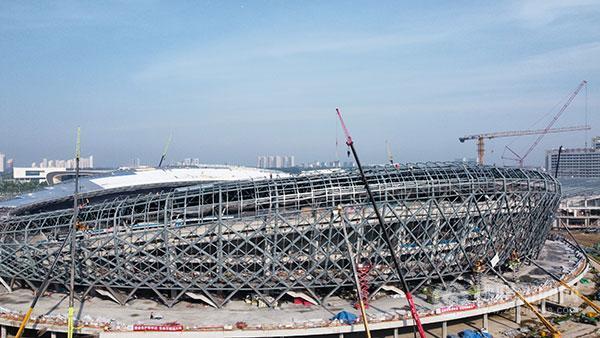 圖為航拍正在施工中的宿州奧體中心。連日來,宿州奧體中心各參建單位堅持“安全至上、質量第一”的建設理念,進一步優化施工方案,強化統一協作,密切配合,提速增效,確保項目高質量按時交付使用,為2026年安徽省第十六屆運動會成功舉辦打牢堅實基礎。 特約攝影 張成伍