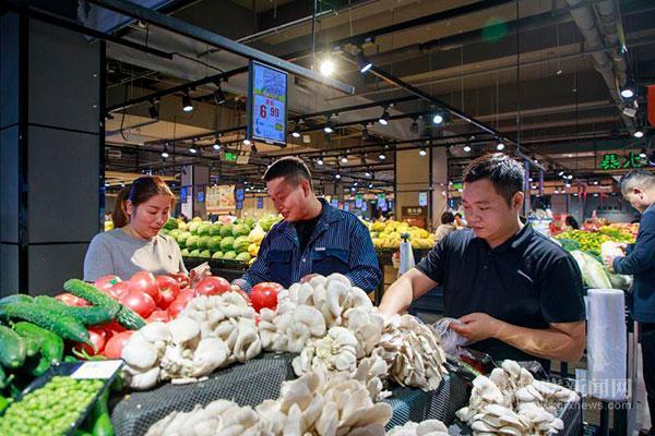 9月24日,宿城淮河中路一超市內(nèi)市民正在選購蔬菜。國慶、中秋“雙節(jié)”臨近,為滿足廣大群眾節(jié)日消費(fèi)需求,我市多家商超提前謀劃,全力保障節(jié)假日期間市場供應(yīng)充足、物價平穩(wěn)、消費(fèi)安全。 本報記者 蔣幫煜 攝