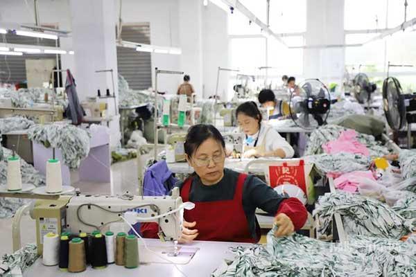 10月16日,在埇橋區汴河街道工業園,安徽睿紳服裝服飾有限公司車間里一派繁忙景象,職工們正開足馬力生產訂單。近年來,埇橋區全力推進“民營經濟立區”發展戰略,出臺一系列加快民營經濟發展的好政策,激發民營企業發展活力,并帶動大批城鄉居民實現家門口就業。特約攝影 張成伍