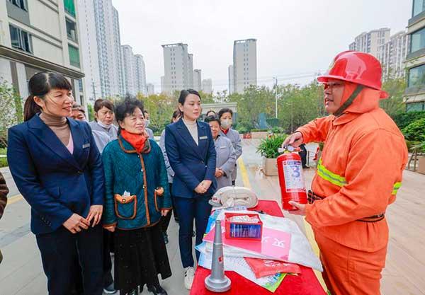 11月6日,埇橋區三里灣街道拂曉社區在江河鳴翠小區開展“全民消防 生命至上—安全用火用電”主題教育宣傳活動。活動現場,消防宣講員為社區居民講解火災疏散逃生基本常識、消防器材的正確使用方法等,增強居民的消防安全意識,筑牢消防安全“防火墻”。 記者 蘇洋 攝