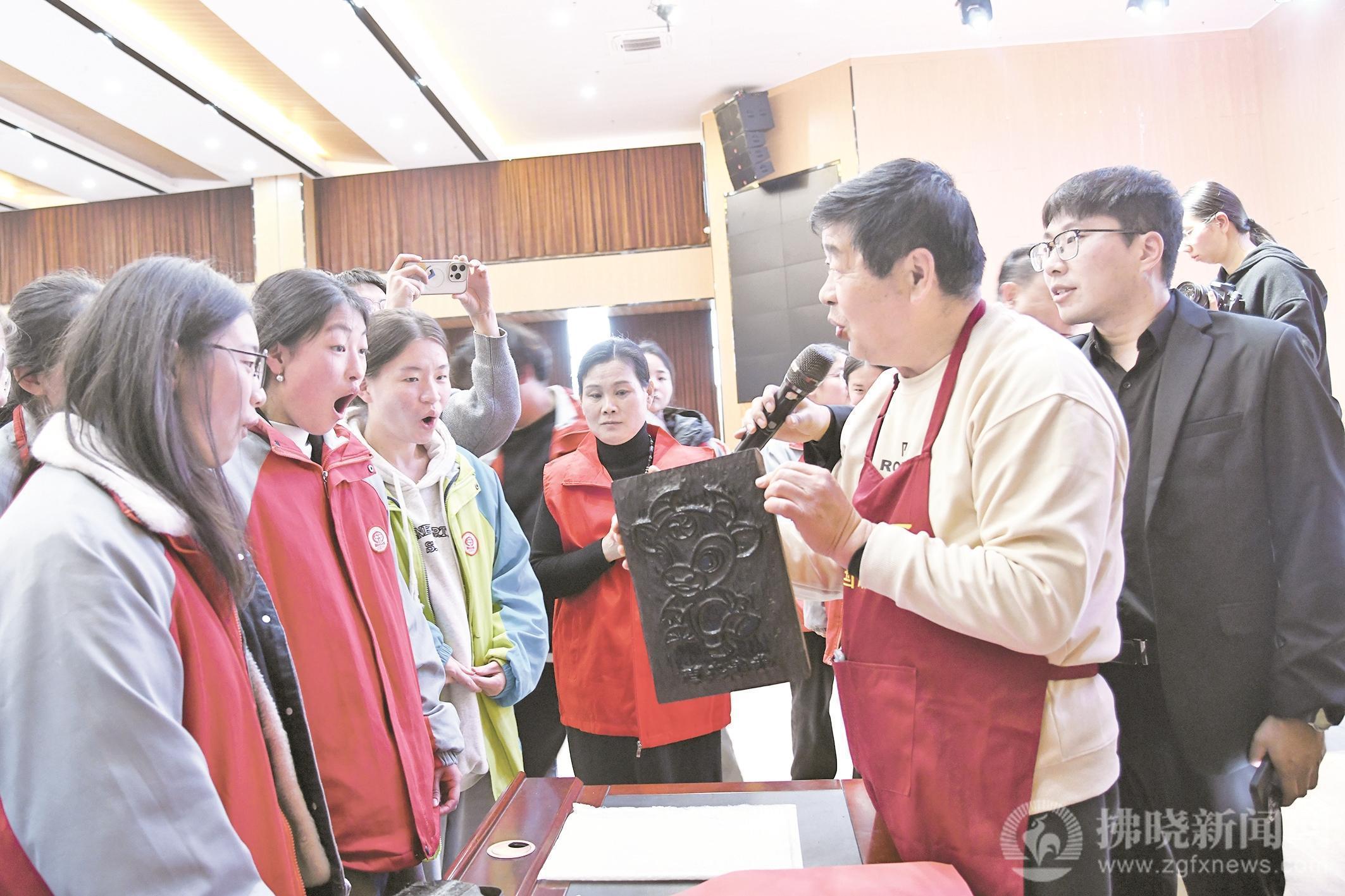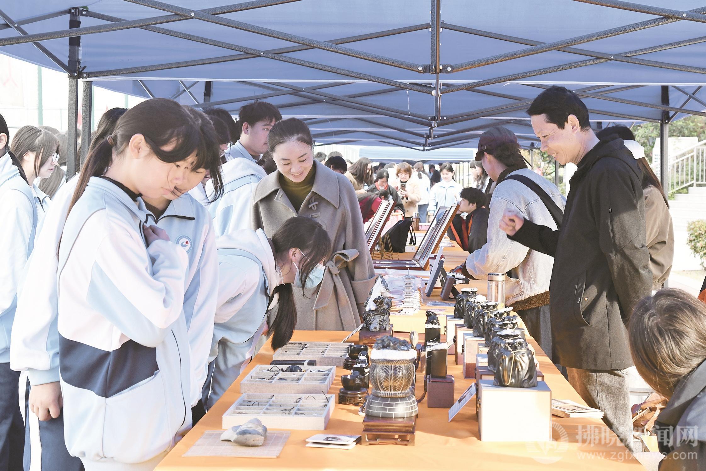 校園非遺展熱鬧非凡,學(xué)生們對(duì)每一個(gè)作品都懷揣好奇心,想要了解它們的制作過程。