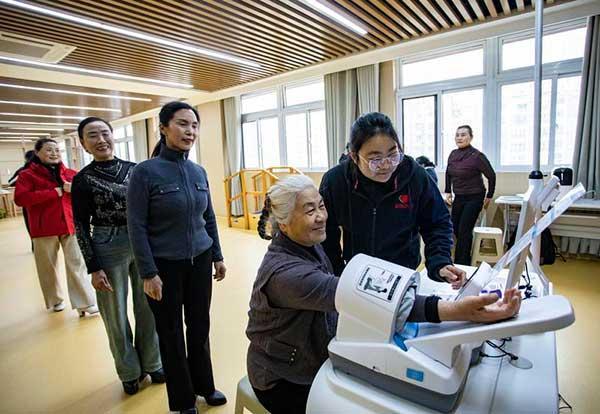 近日,老年人在埇橋區(qū)西關(guān)街道下關(guān)社區(qū)智慧康養(yǎng)中心進(jìn)行健康檢測。該社區(qū)養(yǎng)老機構(gòu)總面積近千平方米,已正式建成投入使用。根據(jù)老年人需求,康養(yǎng)中心內(nèi)設(shè)置日常就餐、文娛活動、居家休養(yǎng)和健康檢測等多個功能區(qū),為轄區(qū)老年人打造“家門口的幸福港灣”,切實緩解家庭養(yǎng)老壓力,讓老人樂享晚年。記者 馬峰 攝