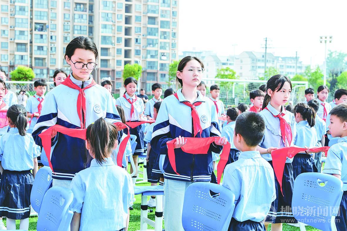 2025年5月29日,靈璧縣第十小學承辦了全縣一年級新隊員入隊儀式,向全縣各校展示了一年級入隊課程教學成果。儀式現場,同學們隊列整齊、眼神堅定,在激昂隊歌中佩戴紅領巾、莊嚴宣誓,稚嫩童聲飽含著堅定的信念。這一成果的展示,得益于馬鞍山市采秣小學援教團隊的系統指導。為幫助靈璧縣第十小學完成一年級入隊課程建設,馬鞍山市采秣小學援教團隊從4月初就緊扣“六知六會一做”內容,制定實施方案,組織全體中隊輔導員展開系統培訓,并按計劃推進教學,讓入隊課程在靈璧落地開花。