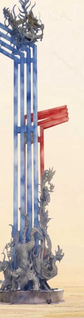 在蚌埠龍子湖畔,由藝術大師韓美林設計的南北分界雕塑巍然矗立。四根藍色鋼管指向北方,象征寒冷;四根紅色鋼管延伸南方,代表溫暖。游客在此可以體驗“一步跨南北”的奇妙感受。