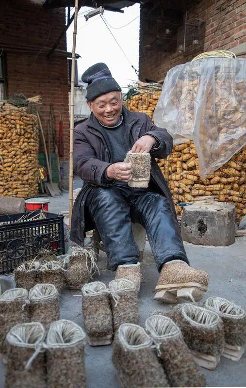 夕陽西下,余暉灑滿小院。孫振坤和老鄉依舊埋首于手中的蘆纓與麻繩,手指粗糙卻不失靈巧,眼神專注而沉靜。一雙雙厚實的茅窩,裹著蘆纓的暖,藏著柳木的香,不僅是昔日蕭縣人冬日里的溫暖依靠,纏繞著幾代人難以割舍的鄉愁,更是代代相傳的民俗瑰寶。