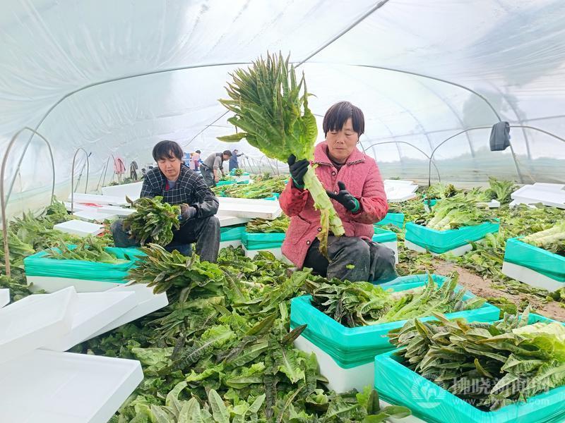 1月20日,埇橋區順河鎮四里中村,村民將剛采收的新鮮萵苣裝箱、稱重,準備發往市場。為做好低溫雨雪天氣蔬菜供應,作為全國蔬菜生產大區,埇橋區積極做好在田蔬菜采收和銷售工作,滿足市場需求,豐富市民“菜籃子”。