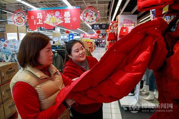 “進入臘月,店里的生意一天比一天好,尤其是紅色系服裝,幾乎成為顧客的首選?!蹦舷柙萍幕虡I(yè)街一家女裝店的經(jīng)營者一邊整理貨架上的紅色毛衣,一邊向記者介紹,紅色象征喜慶吉祥,寓意新年紅紅火火,不管是年輕人穿的時尚款,還是長輩偏愛的簡約款,紅色單品都十分搶手,“最近每天能賣出幾十件紅衣服,有的顧客一來就給全家配齊紅色親子裝,給人一種馬上就要過年的感覺。”正在店內(nèi)試穿紅色大衣的市民程女士告訴記者,自己特意來置辦新年衣物,準備過年走親訪友時穿,接下來還要去童裝區(qū)給女兒挑一件紅色羽絨服?!靶履甏┘t色,看著就喜慶,也希望新的一年全家平安順遂,日子越過越紅火?!背膛啃χf。
