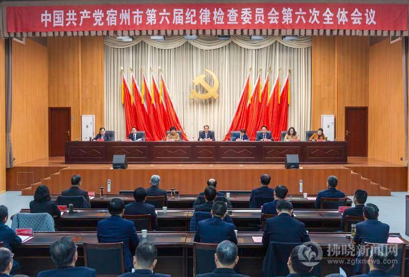 2月2日,中國共產(chǎn)黨宿州市第六屆紀(jì)律檢查委員會第六次全體會議在市政務(wù)中心報(bào)告廳舉行。圖為大會會場。 記者 蘇洋 攝