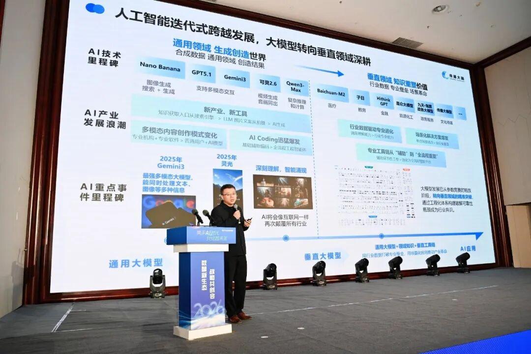 傳播大腦科技(浙江)股份有限公司副總經理、首席技術官張健分享洞見。他強調,政企大模型的關鍵是“深入行業”,指出從通用模型到行業模型的跨越,本質是垂直領域知識的深度重構與業務壁壘的突破。它不只是工具,更是“治理伙伴”,在十秒內完成信息萃取、一句話生成宣傳海報、精準到幀檢索視頻素材的生動案例中,歷史數據資產被重新激活,人機協同效能得以極致釋放。他認為應該從業務最痛的“點”切入,拒絕“萬金油”大模型。