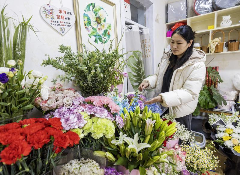 除了花卉市場,宿城的眾多鮮花店也備足貨源,供市民選購。