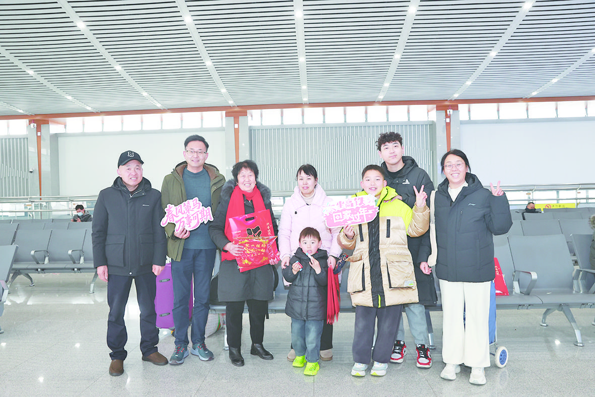 “在外打工一年,就盼著這一天。以前回家要轉車,現(xiàn)在高鐵直達,又快又穩(wěn),剛下車就感受到家鄉(xiāng)的年味了?!睌y家人從中山市返鄉(xiāng)的彭順清感慨萬千。