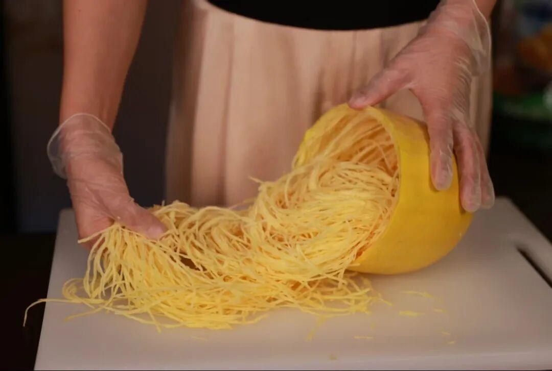 金絲絞瓜的瓜皮色澤金黃,瓜瓤天然成絲似魚(yú)翅,味道甘甜爽脆口感似海蜇,被譽(yù)為“植物魚(yú)翅,天然海蜇”,有清熱解毒、降壓減肥的功效。涼拌食用,清香嫩脆、十分爽口。