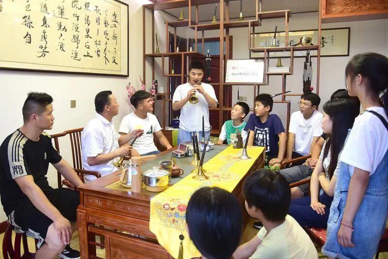 張團結在向徒弟傳授嗩吶吹奏技法。