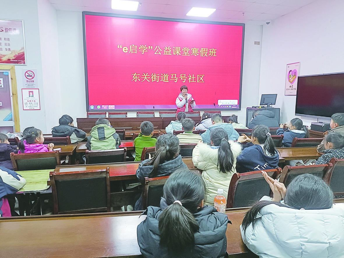 埇橋區(qū)東關(guān)街道馬號(hào)社區(qū)開設(shè)“e啟學(xué)”公益課堂寒假班。