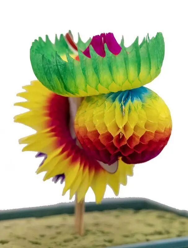 “要選用薄厚適中的紙張,易上色且有韌性的紙在翻動后才能更好回彈。”選紙是至關重要的一步,好的紙張是紙翻花色彩鮮艷、造型變換絲滑的基礎。