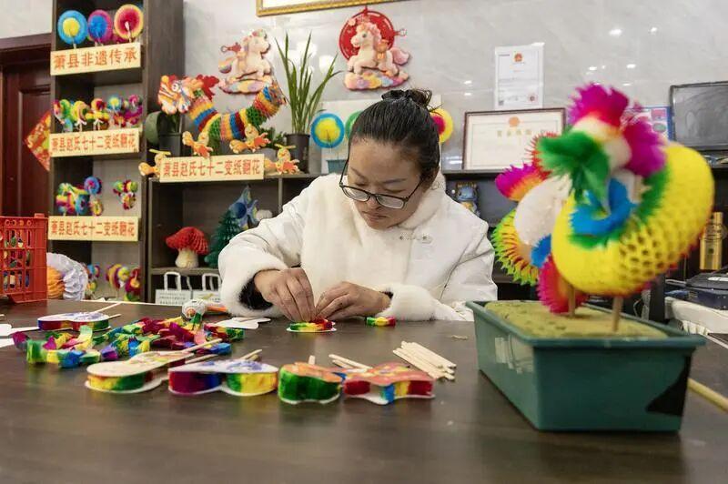 “最近我還在琢磨舞臺表演版本的紙翻花,希望能通過舞臺表演,讓更多人領略紙翻花的千變萬化,看見咱們中國傳統手工藝的魅力。”如今,趙厚真的工作室內,擺滿了造型各異的新式紙翻花,這不僅是孩子們的玩具,更成為裝點生活的藝術品。在她的努力下,紙翻花通過展覽、廟會、表演等形式走進公眾視野,促進了文化交流和藝術普及,蕭縣趙氏紙翻花也走在申報縣級非物質文化遺產代表性項目的路上。