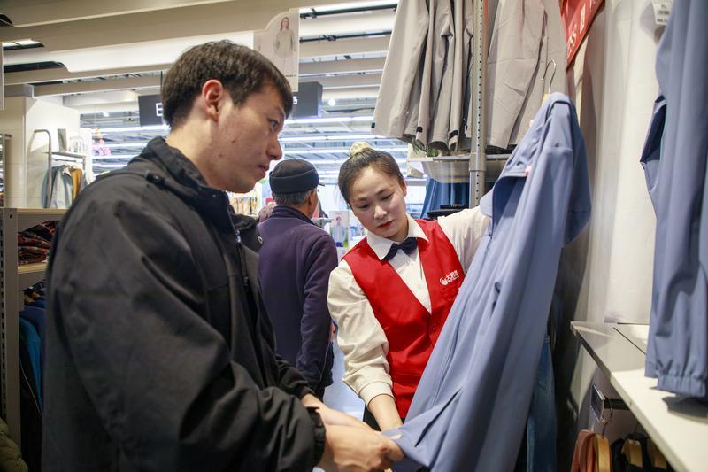 市民(左)在宿城東昌路一超市選購春季服裝。記者 蔣幫煜 攝