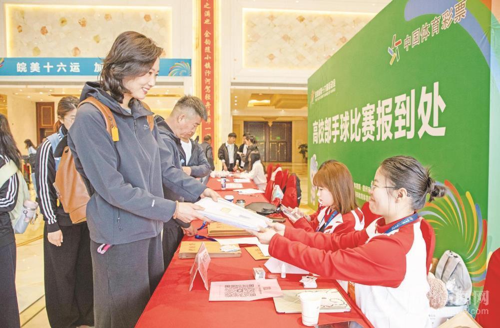 第十六屆省運會高校部手球組參賽人員在宿州豐大國際大酒店報到。記者 蔣幫煜 攝