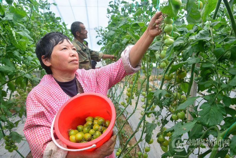日前,在埇橋區楊莊鎮楊莊村溫室大棚里,種植戶正在采摘“青甜2號”小番茄。去年12月份栽種的青、紅、黃水果小番茄,今年3月上市后,深受消費者青睞,產生較高的經濟效益,成為農民拓寬致富之路的甜蜜果。
