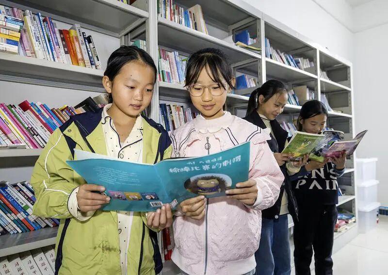 埇橋區(qū)北楊寨行管區(qū)劉合村農(nóng)家書屋內(nèi),孩子們正在閱讀喜愛的書籍。