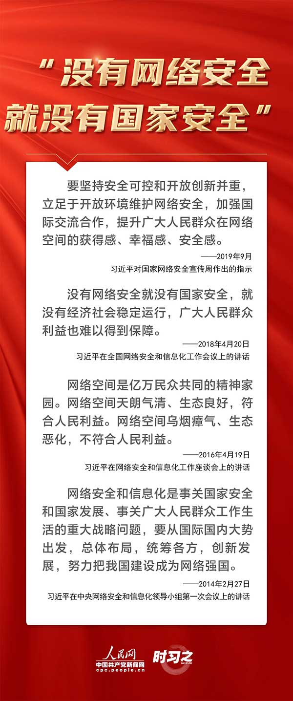 沒有網絡安全就沒有國家安全。今年是《中華人民共和國網絡安全法》施行五周年。一直以來,習近平總書記高度重視網絡安全和信息化工作,敏銳把握信息時代“時”與“勢”,多次在不同場合就網絡安全發表一系列重要論述,為維護國家網絡安全,筑牢國家網絡安全屏障奠定基石。