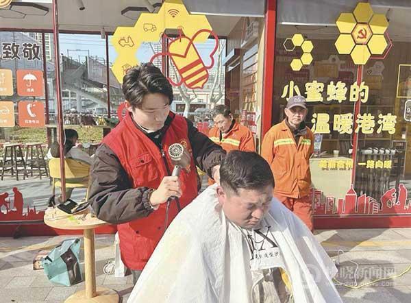 埇橋區南關街道蘇寧商圈暖“蜂”歸宿黨群驛站為新就業群體開展義剪服務。