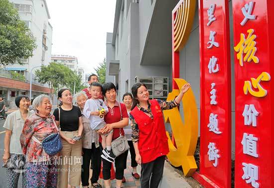 社區居民圍觀文化墻。