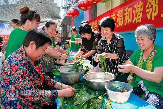 鄰里互助包粽子。