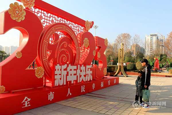 近日,市民在宿城銀河廣場欣賞新搭建的兔年景觀小品。隨著春節的臨近,我市在公園、廣場和城區主要路段打造多處主題景觀小品,懸掛大紅燈籠,街頭巷尾的年味越來越濃,到處呈現出一派喜慶洋洋的節日氛圍。 特約攝影 丁輝