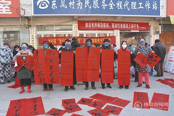 埇橋區時村鎮組織10余名書法愛好者走上集市、村莊,義務為居民書寫春聯、送去新春的祝福。 特約攝影 李華勛