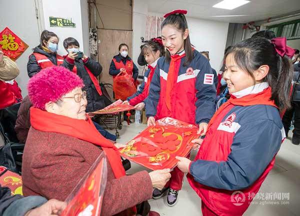 1月16日,共青團(tuán)埇橋區(qū)委員會(huì)聯(lián)合埇橋區(qū)青年志愿者協(xié)會(huì)開(kāi)展“溫暖進(jìn)宿城 新春送祝福”愛(ài)心志愿活動(dòng)。活動(dòng)現(xiàn)場(chǎng),市港利小學(xué)的學(xué)生們?yōu)槲麝P(guān)街道祥安社區(qū)敬老院的老人送上“福”字及慰問(wèn)品,送去新春祝福。記者 蘇洋 攝