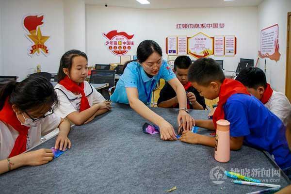 “紅領(lǐng)巾學(xué)院”暑托班老師帶同學(xué)們?cè)谧鍪止ぁS浾?蔣幫煜 攝