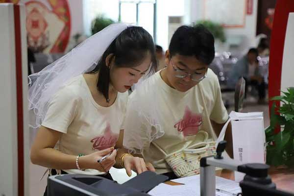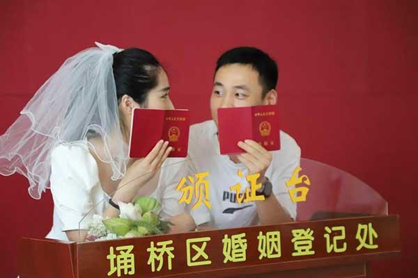 據統計,8月10日當天,埇橋區民政局婚姻登記處共為88對新人辦理了結婚登記。