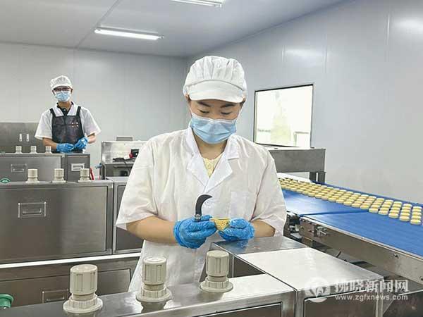 中秋將至,在泗縣虹城街道的泗縣好食得食品有限公司車間內,工人正在趕制月餅訂單。該公司由合肥思本食品有限公司投資興建,研發的青團、桃酥、杏仁餅、月餅等糕點,深受消費者青睞。 鐘子怡 攝