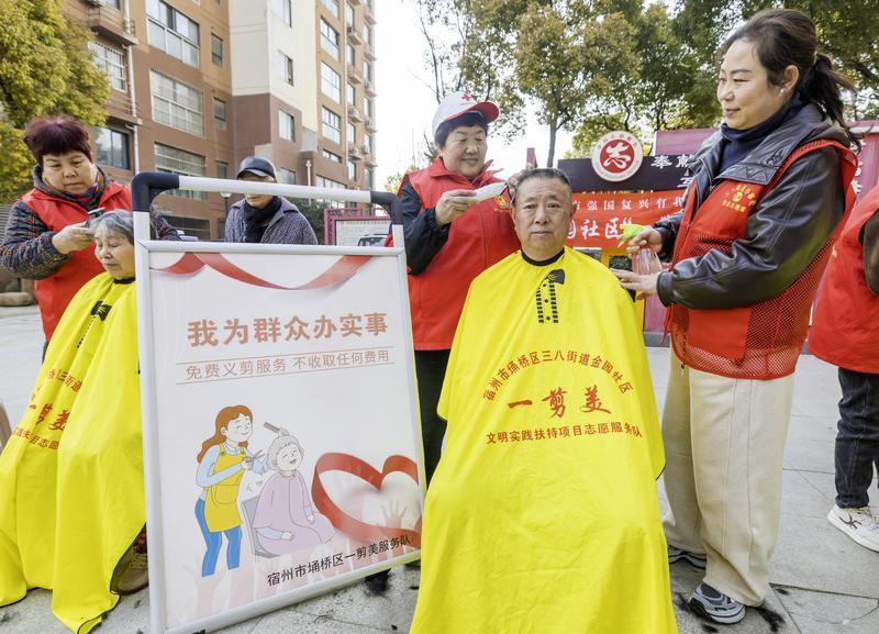3月9日,埇橋區三八街道金園社區舉行“一抹志愿紅 溫暖社區情”志愿服務活動。現場,社區志愿者為居民提供愛心理發、磨剪子、義診等服務,弘揚“奉獻、友愛、互助、進步”的志愿服務精神,提升居民的獲得感和幸福感。